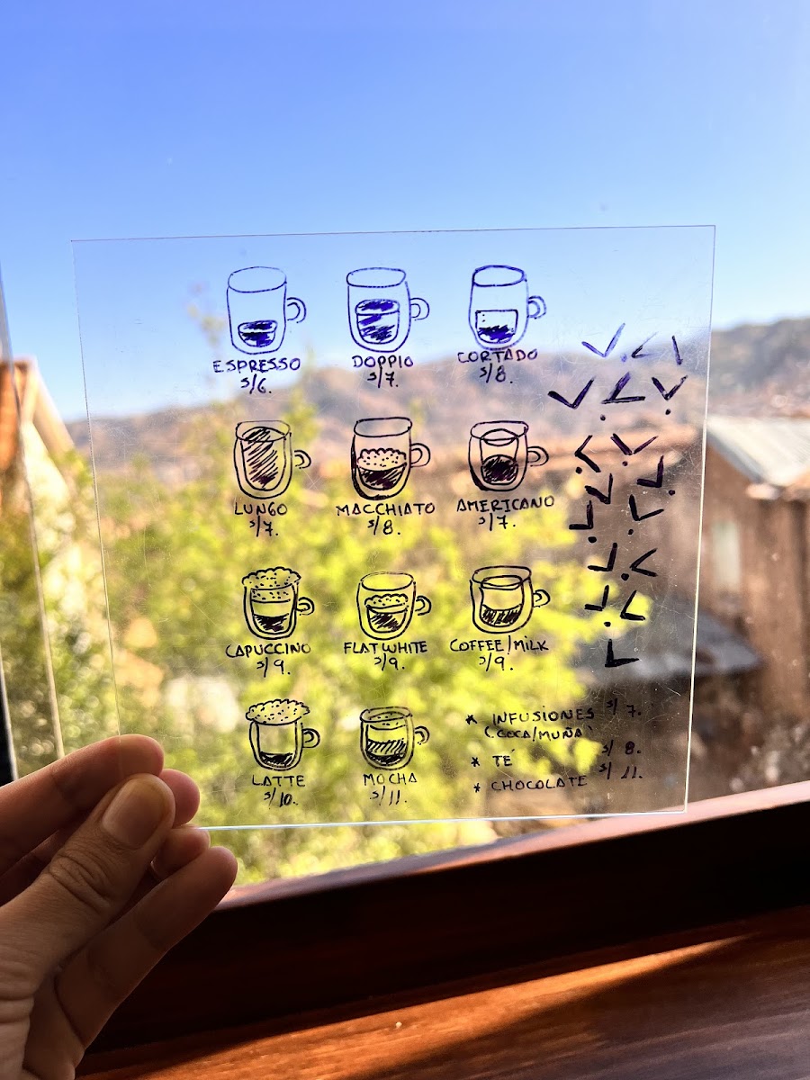 On the menu, you’ll find essentials like espresso and cappuccino latte alongside light dishes such as avocado toast and huevos revueltos. These choices complement the calm atmosphere, inviting guests to unwind with a warm cup or a satisfying snack while taking in views of Cusco’s vibrant streets.